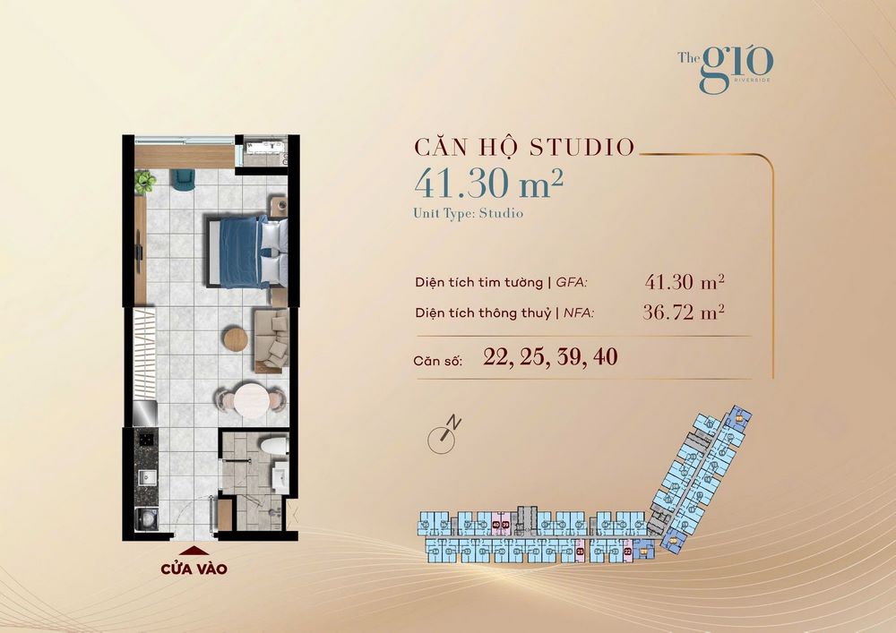 Căn 1PN diện tích 40m2: Chiếm tỉ lệ 10%